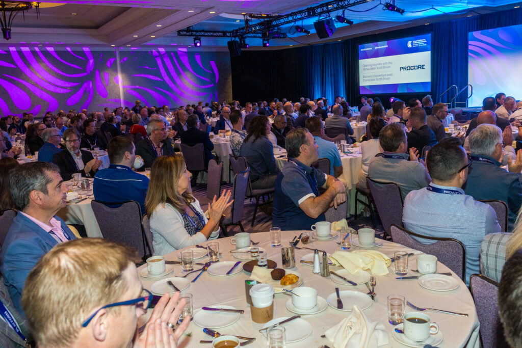The Honourable Scott Brison set the tone for the conference with a powerful opening keynote (sponsored by Procore), offering a clear-eyed look at the complex economic landscape facing the industry. With trade tensions reshaping cross-border relationships, supply chains under pressure and governments rethinking procurement and infrastructure priorities, the former President of the Treasury Board, now Vice-Chair of BMO Wealth, drew on both senior federal leadership and private-sector experience to offer timely insights on navigating uncertainty and positioning for growth.